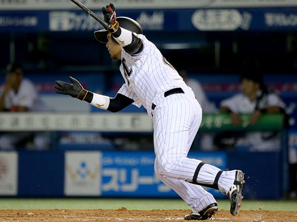 4番 ウィーラー 左安 外角低めのフォークをレフトへ打ってヒット |