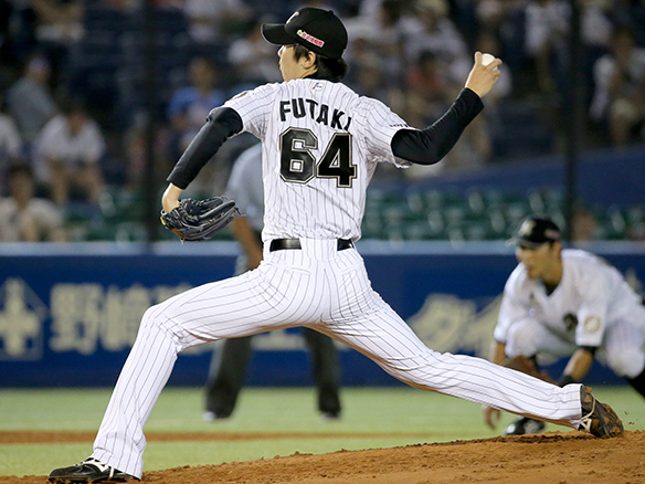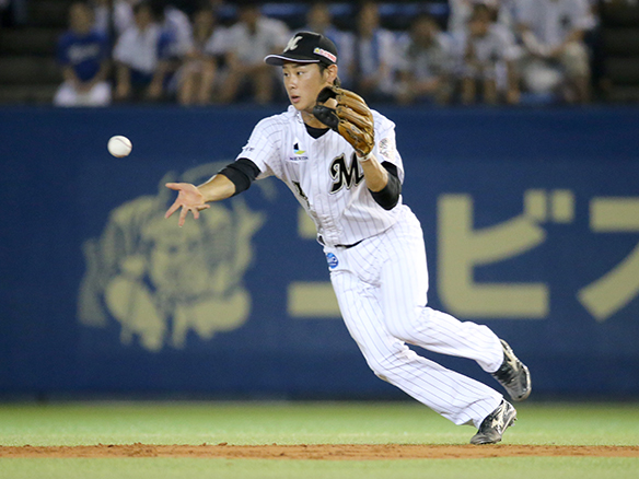 投手 大嶺祐 7番 岡島 中安 外角のストレートをセンターへ打ってヒット |