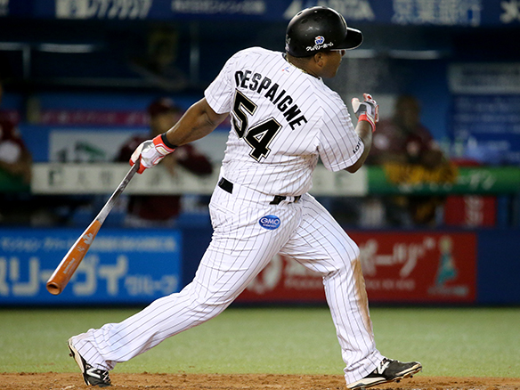 先頭のデスパイネが痛烈なレフト前ヒットを放つ