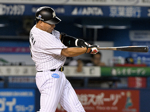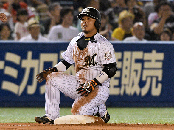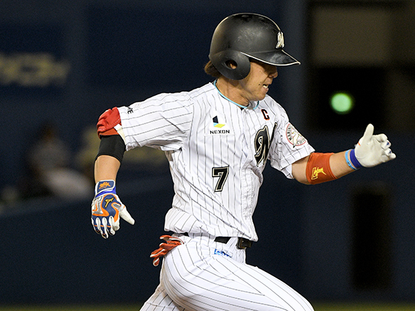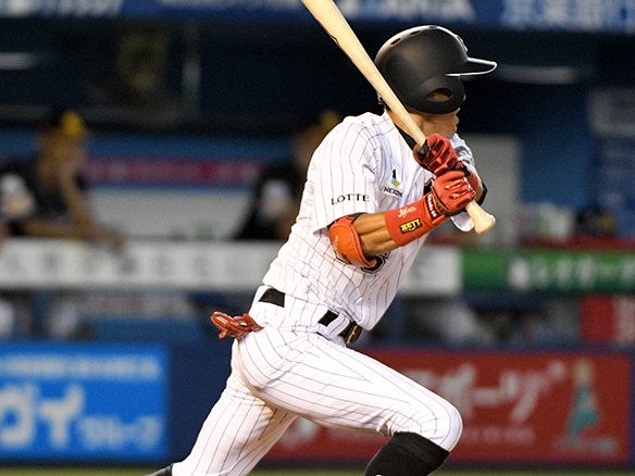 5番 井口 左安 内角高めのストレートをレフトへ打ってヒット |