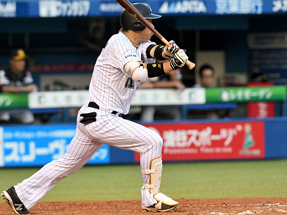 3番 柳田 中安 ランナー1塁 高めのストレートをセンターへ打ってヒット |