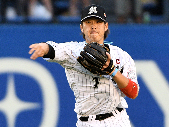 福浦は低めの変化球にバットを合わせるも内野ゴロに
