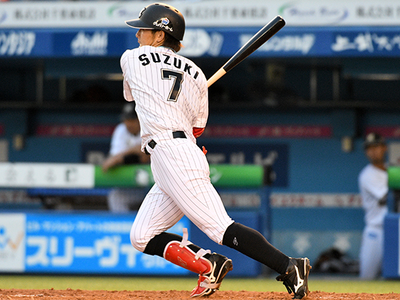 外角球を引っ張るもセカンドゴロに終わった鈴木