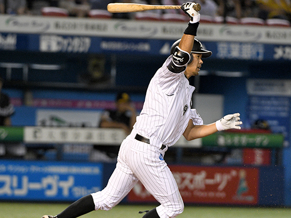 3番 柳田 中安 ランナー1塁 内角のストレートをセンターへ打ってヒット |