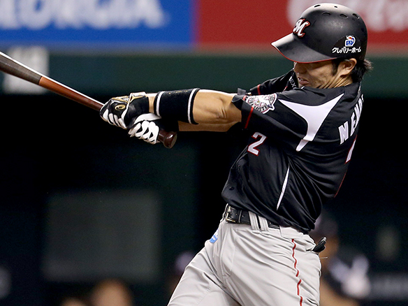6番 ナバーロ 中安 150キロの外角高めのストレートをセンターへ打ってヒット |