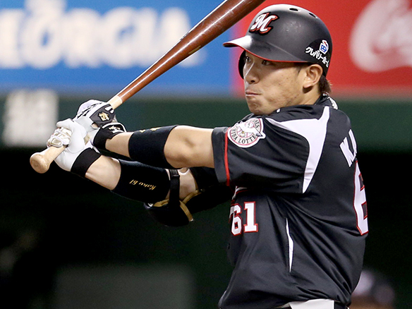 一、二塁間を鋭く破る安打でチャンスを拡大した平沢