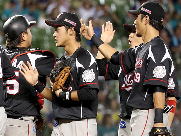 投手 涌井 守備変更:井上→ファースト 守備変更:荻野→ライト 守備変更:清田→センター  |