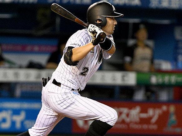 1番 荻野貴 左中二 外角のチェンジアップをレフトへ打ってツーベース  |