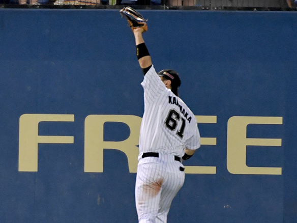 やや後ろに下がりフライを捕球した角中