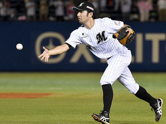 セカンド正面へのゴロをさばくナバーロ