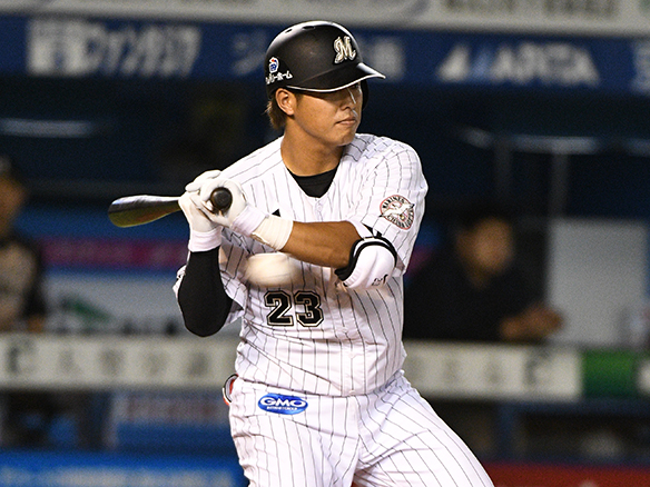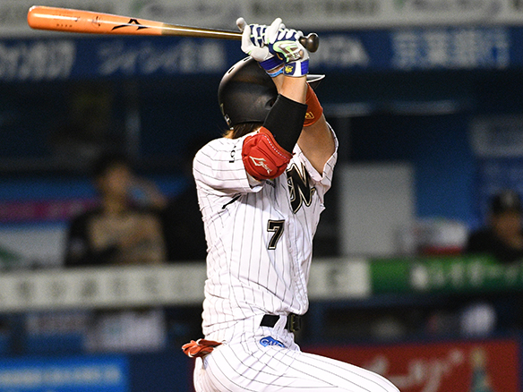7番 レアード 左安 高めのフォークをレフトへ打ってヒット  |