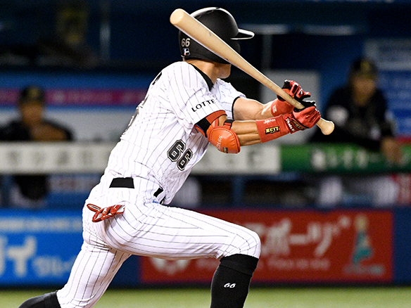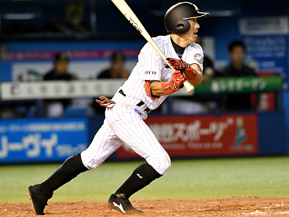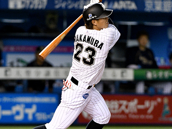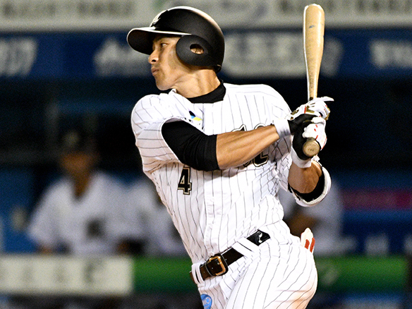 角中は変化球にタイミングを合わせ勝ち越し打を放つ!