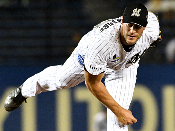 投手 スタンリッジ 8番 若月 三ゴ 外角低めのストレートを打つもサードゴロ 1アウト  |