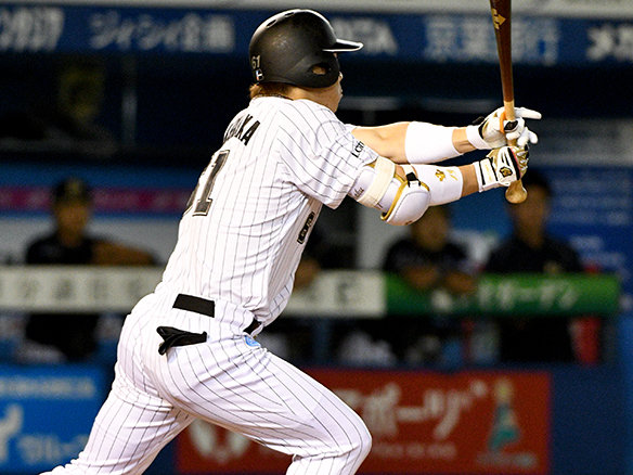 サードの頭上を越える安打を放った岡田