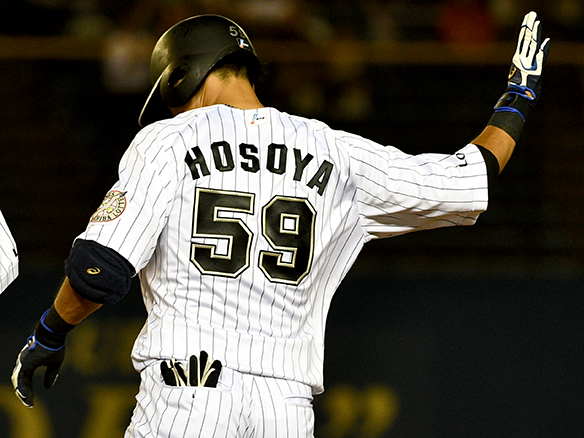 細谷は高めの直球を弾き返し出塁した