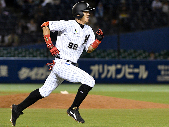 左中間を破る三塁打で先制打点を挙げた根元
