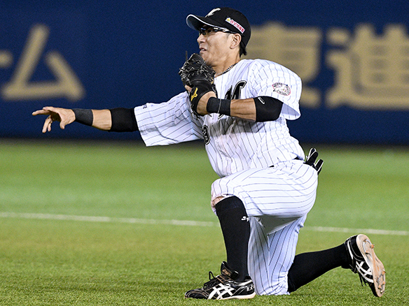 細谷はゴロを横飛びで好捕し素早く送球