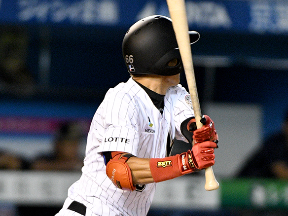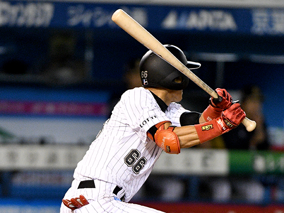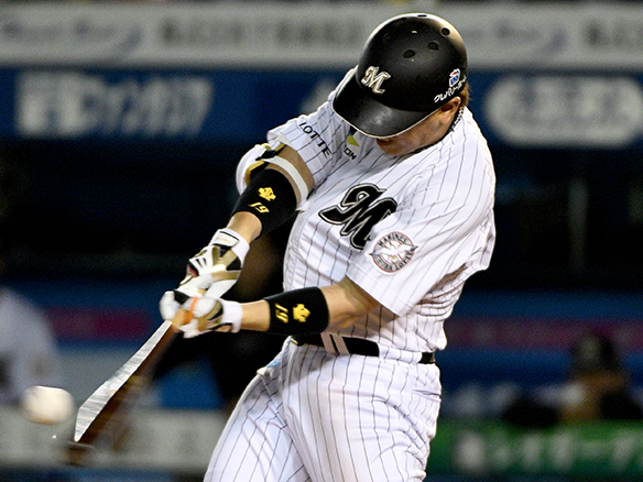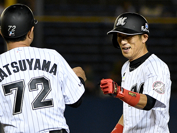 5番 福浦 右安 内角のフォークをライトへ打ってヒット 1塁  |