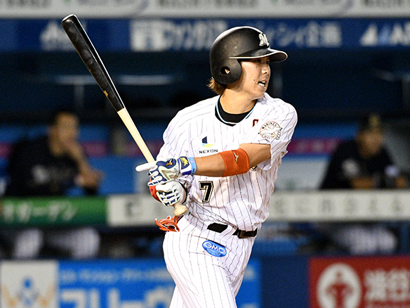 3番 吉田正 四球 フォアボールを選ぶ 1,2塁  |