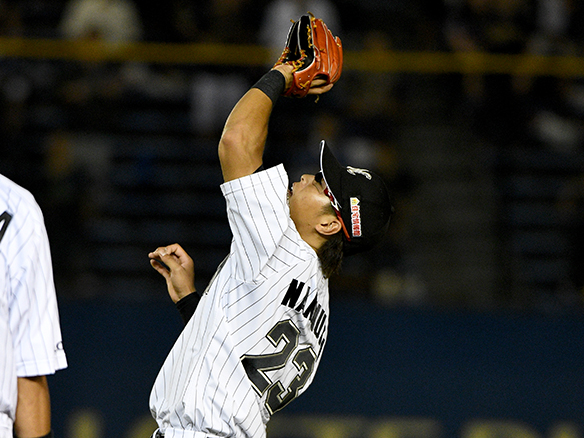 3番 角中 三ゴ ランナー1,2塁 外角高めのストレートを打つもサードゴロ 3アウトチェンジ  |