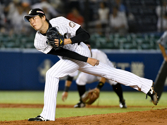 投手 東明 4番 デスパイネ 一飛 内角のストレートを打つもファーストフライ 1アウト  |