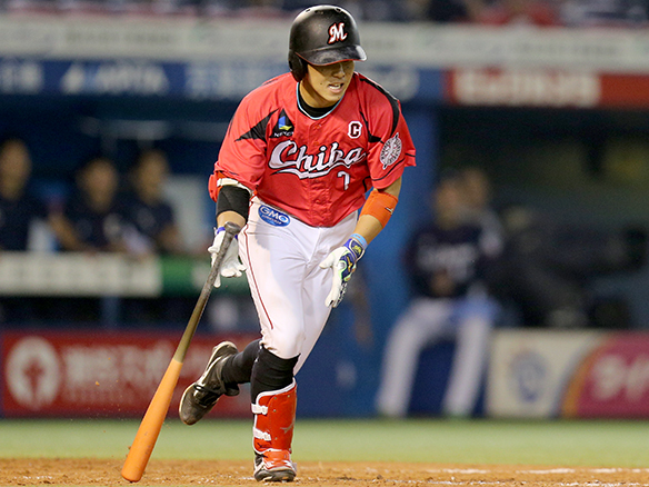 4番 福浦 左ゴ ランナー1,2塁 内角高めのストレートを打つもレフトゴロ 2アウト  |