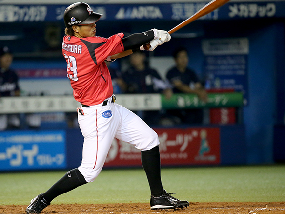 3番 浅村 中安 ランナー1塁 低めのカーブをセンターへ打ってヒット 1,3塁  |