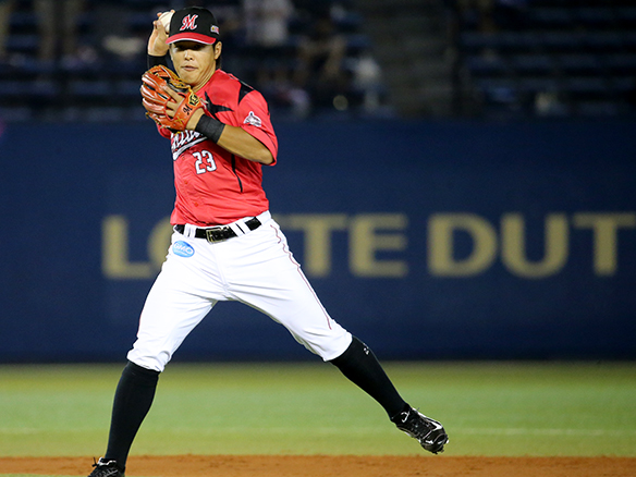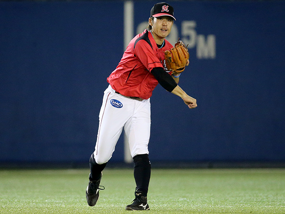 緩いゴロに前進しランニングスローを見せた中村
