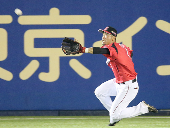 清田は左中間への当たりをスラィディングキャッチ!!