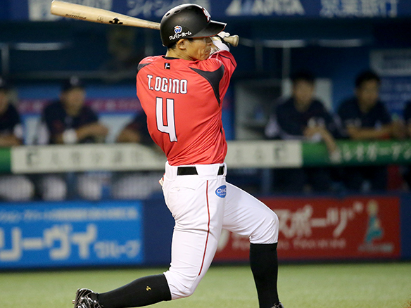 1番 荻野貴 左飛 低めのストレートを打つもレフトフライ 3アウトチェンジ  |