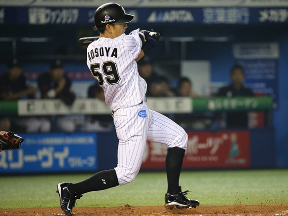 7番 細谷 中安 ランナー1塁 外角高めのストレートをセンターへ打ってヒット 1,2塁  |