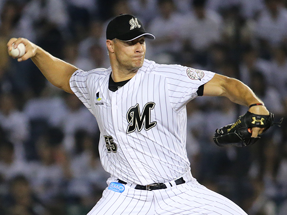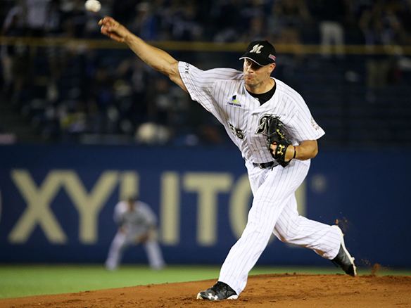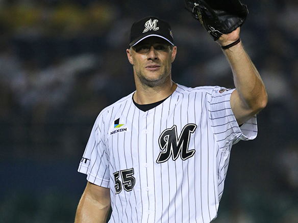 投手 スタンリッジ 4番 中村 左飛 低めのスライダーを打つもレフトフライ 1アウト  |