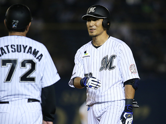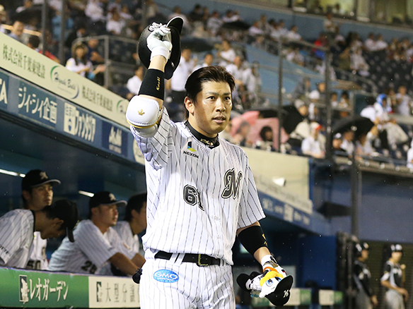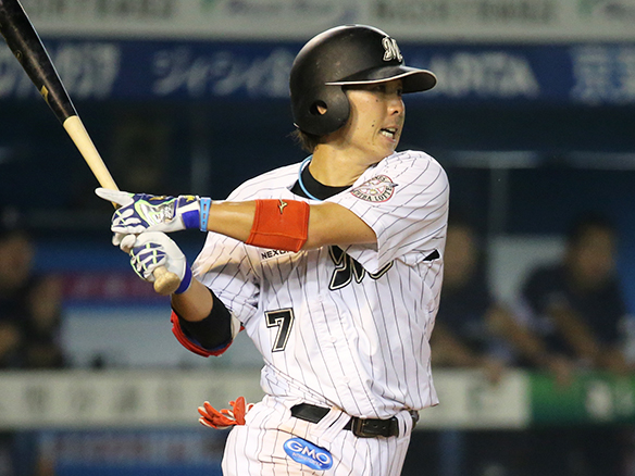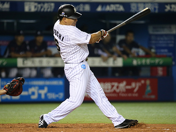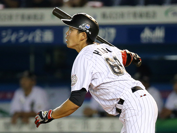 4番 井口 左安 ランナー1塁 内角のスライダーをレフトへ打ってヒット  |