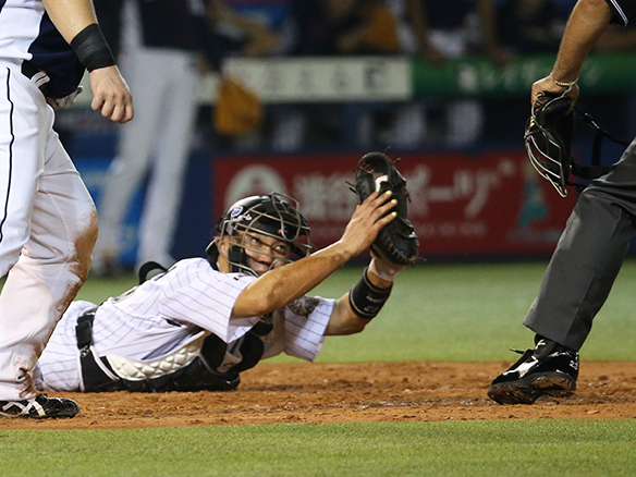 9番 炭谷 左安 ランナー1,2塁 外角のスライダーをレフトへ打ってヒット  |