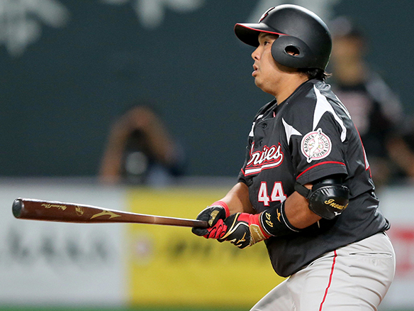 7番 レアード 左安 レアード:ランナー1塁 高めのスライダーをレフトへ打ってヒット 1,2塁  |