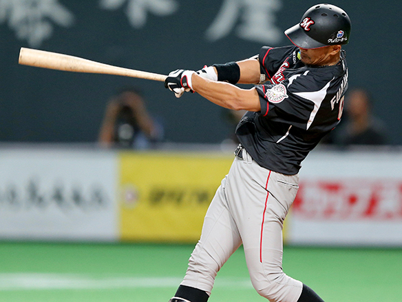 福浦がセンターへ意地の一打を放つ