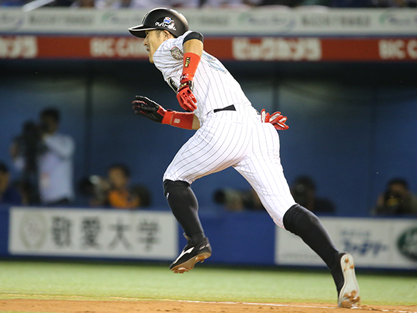 投手 スタンリッジ 1番 島内 左安 低めのチェンジアップをレフトへ打ってヒット 1塁  |