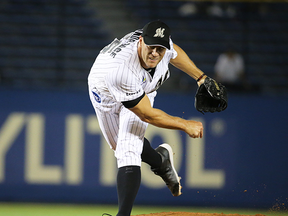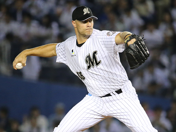 5番 ペゲーロ 見三振 外角高めのスライダーを見逃し三振 1アウト  |