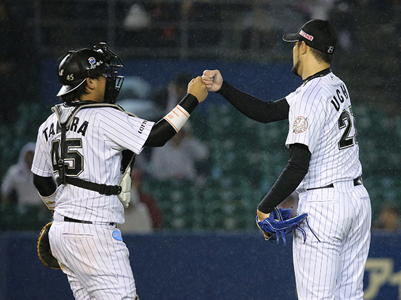 6番 銀次 空三振 外角低めのスライダーを空振り三振 3アウトゲームセット  |