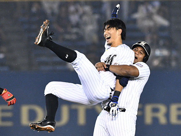 サヨナラ打を放った細谷は手荒い祝福を受ける