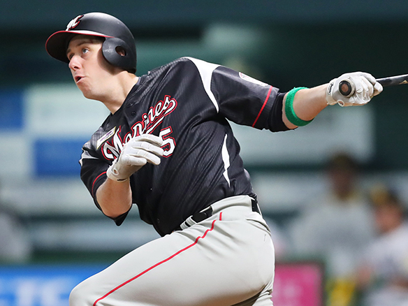チーム初安打を中前へ運ぶ井上