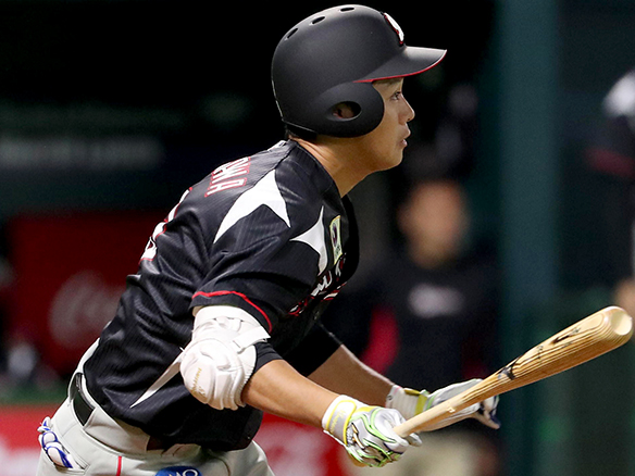 3番 柳田 中安 低めのカーブをセンターへ打ってヒット 1塁 |