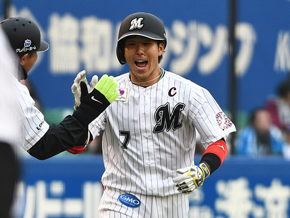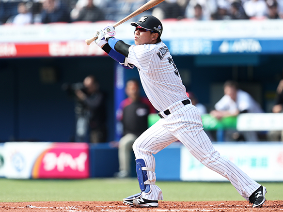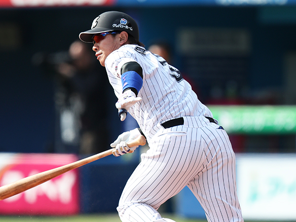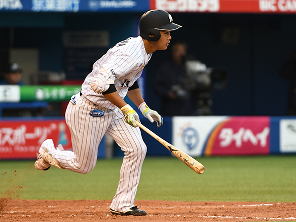 9番 石井一 右安 内角のスライダーをライトへ打ってヒット 1塁 |