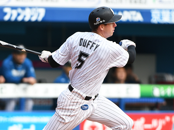 6番 ダフィー 四球 フォアボールを選ぶ 1塁 |