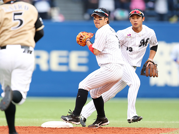 投手 大嶺祐 7番 レアード 遊ゴロ 低めのフォークを打つもショートゴロ 1アウト |