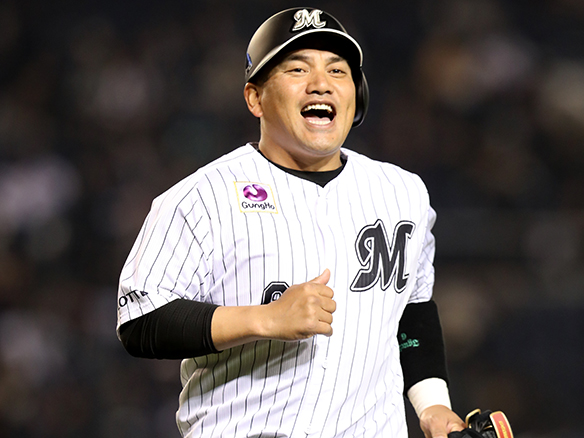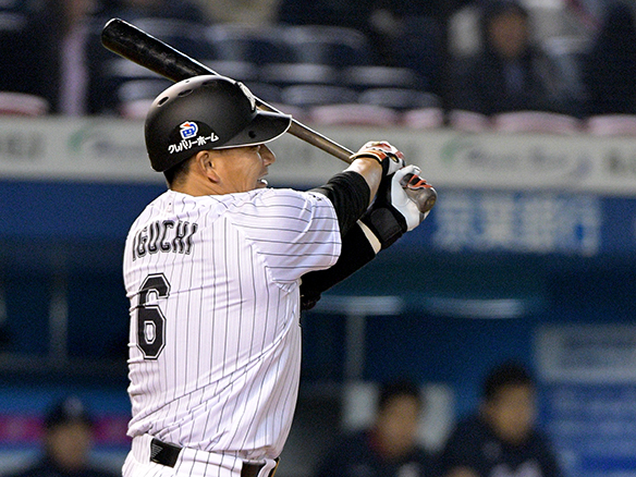 4番 井口 四球 フォアボールを選ぶ 1塁 |