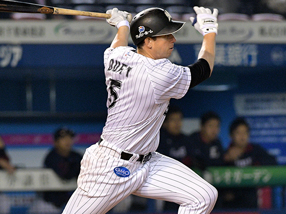 7番 ダフィー 四球 フォアボールを選ぶ 1塁 |