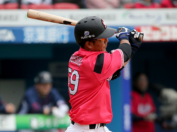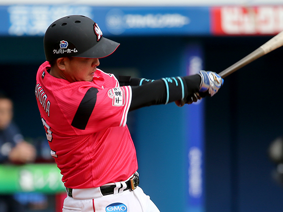 3番 浅村 右安 外角のストレートをライトへ打ってヒット 1塁 |