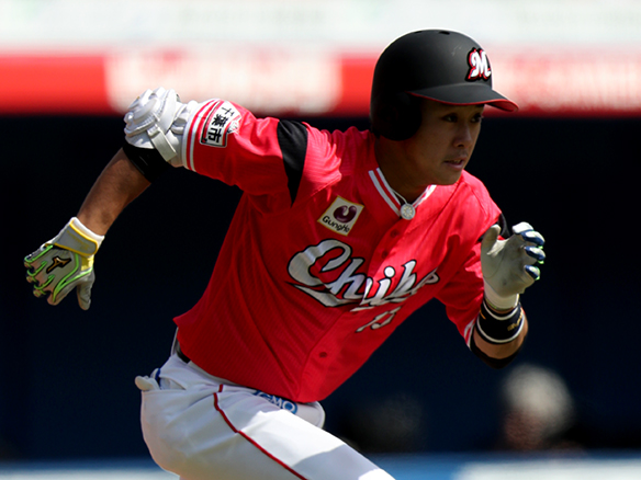 先頭打者の平沢が内野安打で出塁する
