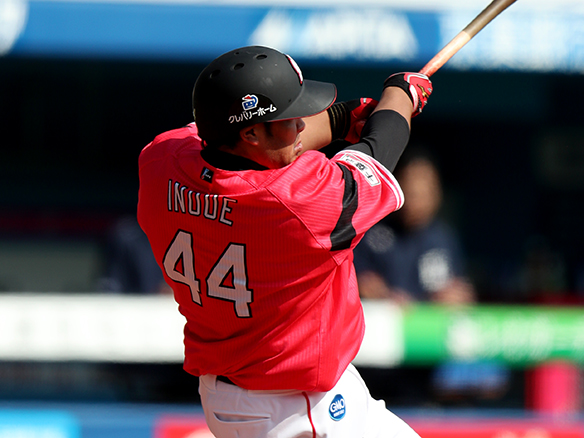 5番 井上 中飛 低めのツーシームを打つもセンターフライ 2アウト |